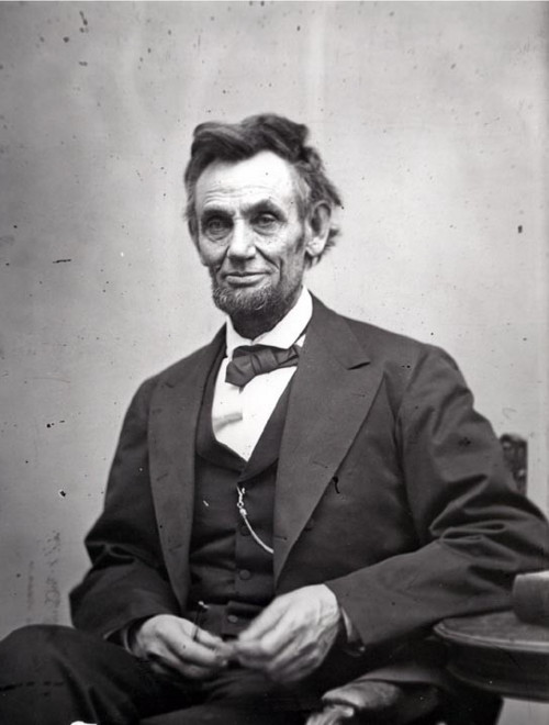 Abraham Lincoln, photographed February 5, 1865, by Alexander Gardner, portrays the weariness of four years of war.